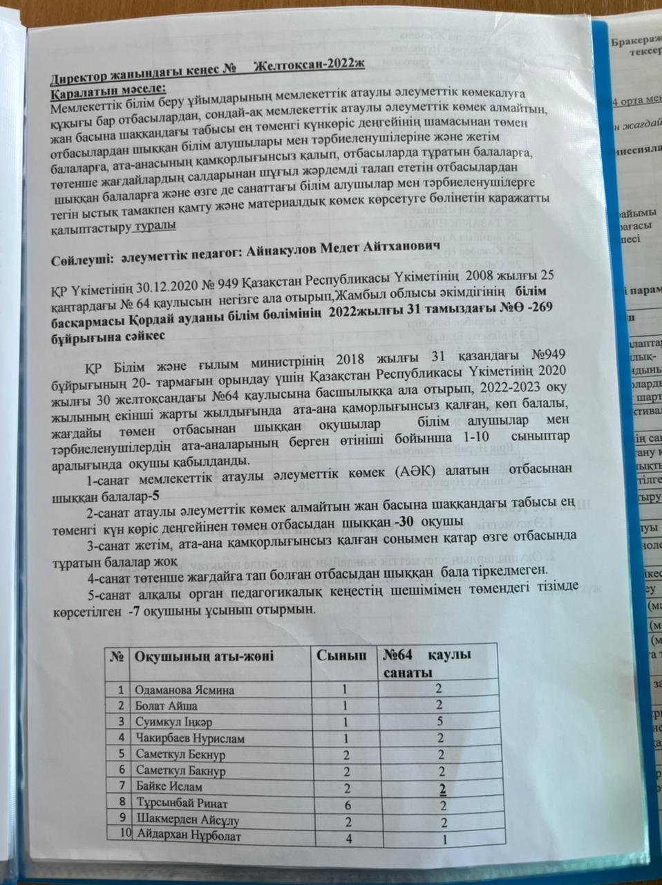 » Директор жанындағы кеңес № Желтоксан- 2022ж